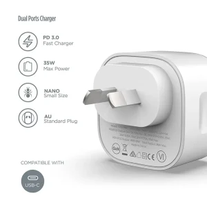 - Provides up to 35W maximum power for single-device fast charging via Type-C PD ports.